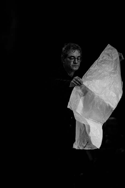 Die Performance „Augenblicke“ versteht sich als Experiment und versucht, genau das auszukosten, was der Titel benennt. Gearbeitet wird mit der menschlichen Stimme, dem Raum, der vergehenden Zeit und allerlei Klängen. Immer geht es um den erfüllten Augenblick, um eine Kunst des Verweilens. Erst durch ein solches Innehalten wird das Leben davor bewahrt, in unzählige Augenblicke zu zerfallen, die nichts miteinander zu tun haben, einander nichts angehen und Stress erzeugen. Die Performance „Augenblicke“ versucht dagegen, ein Netz aus Beziehungen zu flechten. Augenblicke werden so zu Ausblicken, Einblicken und Rückblicken.
