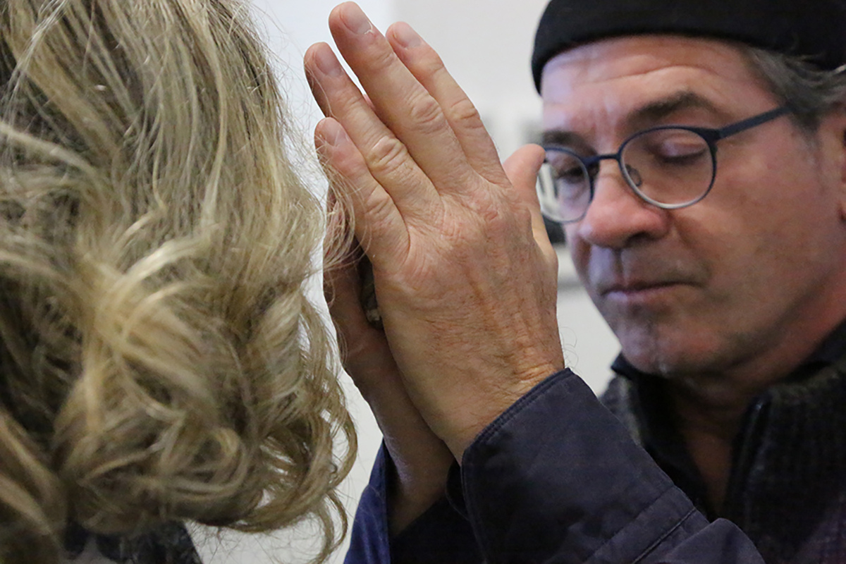 Die Performance reagiert intuitiv auf die Atmosphäre vor Ort. Der Körper bewegt sich langsam, lauschend, suchend – im subtilen Dialog mit dem Raum entsteht eine spürbare Verbindung zwischen Ort und Anwesenden.