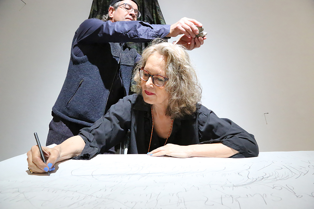 Die performative Geste des Öffnens, zentral in Reuleckes Arbeiten open up I und open up II, bildet das konzeptuelle Fundament der Installation. Sie fungiert zugleich als Bühne wie als Schwellenraum – ein Ort, an dem sich Körper, Raum und Wahrnehmung in einen dynamischen Austausch begeben.